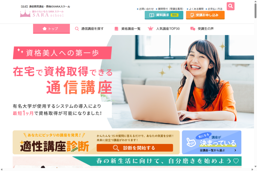 - SARAスクールのプラチナコースは試験免除で100%資格取得