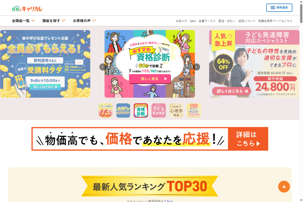 - キャリカレ:68,800円(Web申込価格)
